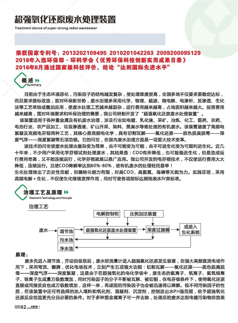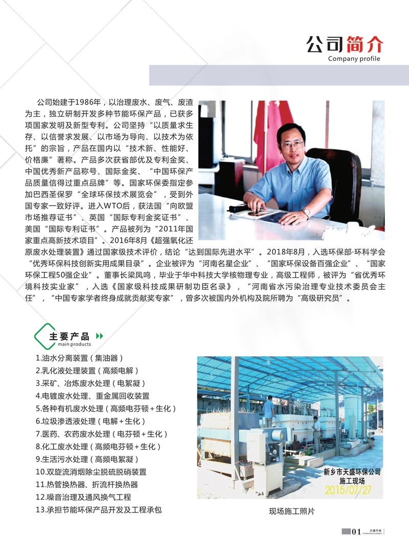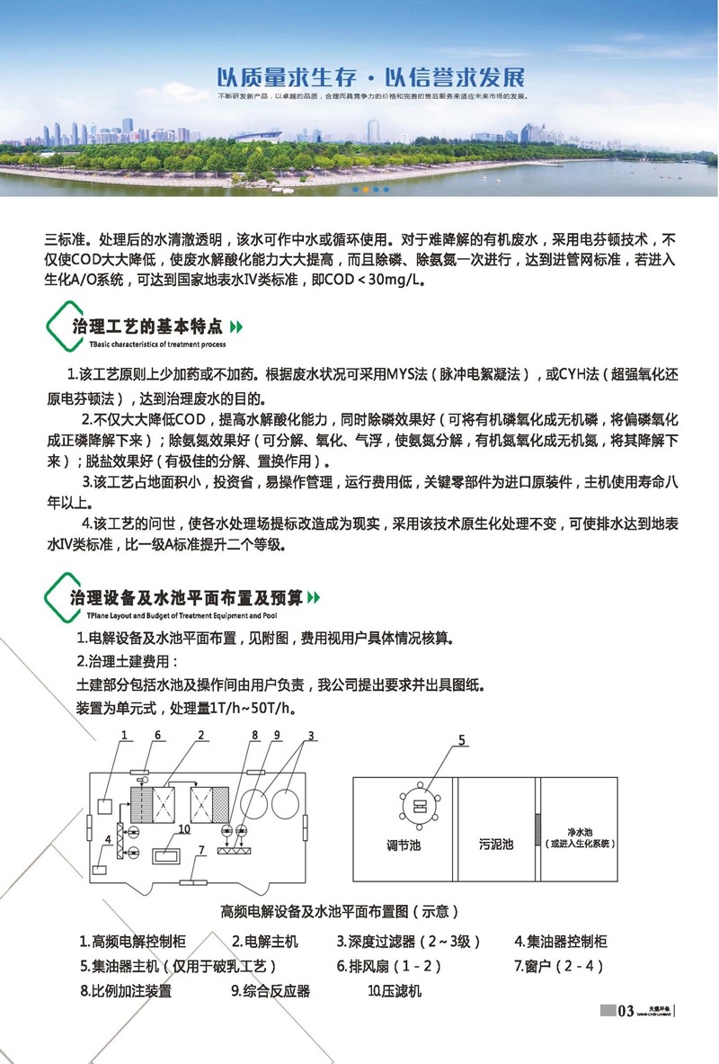 公司始建于1986年,以處理各種有機(jī)廢水、各種重金屬廢水為主,獨(dú)立研制開發(fā)多種節(jié)能環(huán)保產(chǎn)品,已獲多項(xiàng)國(guó)家發(fā)明及新型專利一種電化學(xué)廢水處理裝置 ZL 2013 2 0210949.5。公司堅(jiān)持“以質(zhì)量求生存、以信譽(yù)求發(fā)展、以市場(chǎng)為導(dǎo)向、以技術(shù)為依托”的宗旨。